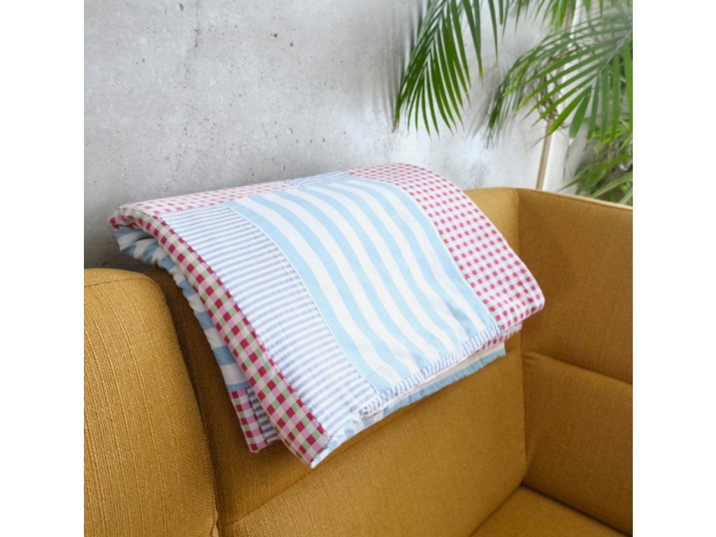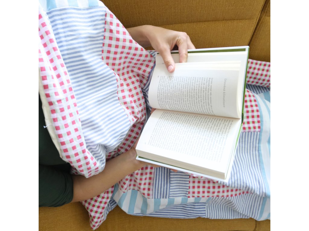 Zadní strana jednobarevná. Deka má všitou recyklovanou GEOTEXTILII, díky ní má deka dobré izolační vlastnosti.